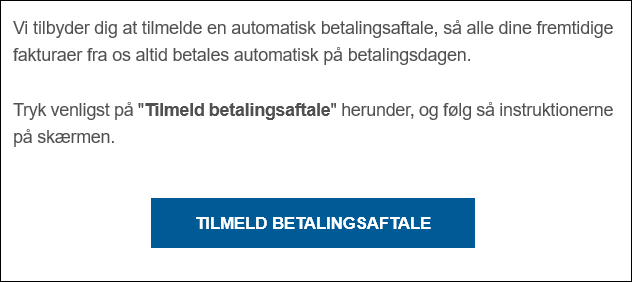 - Kunden trykker på knappen "TILMELD BETALINGSAFTALE", og følger derefter instruktionerne på skærmen.
